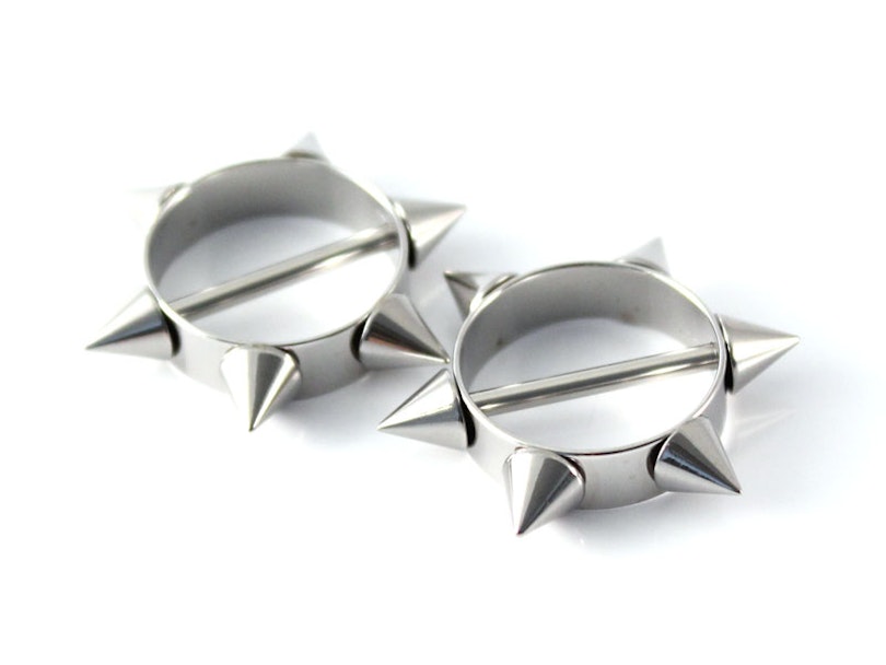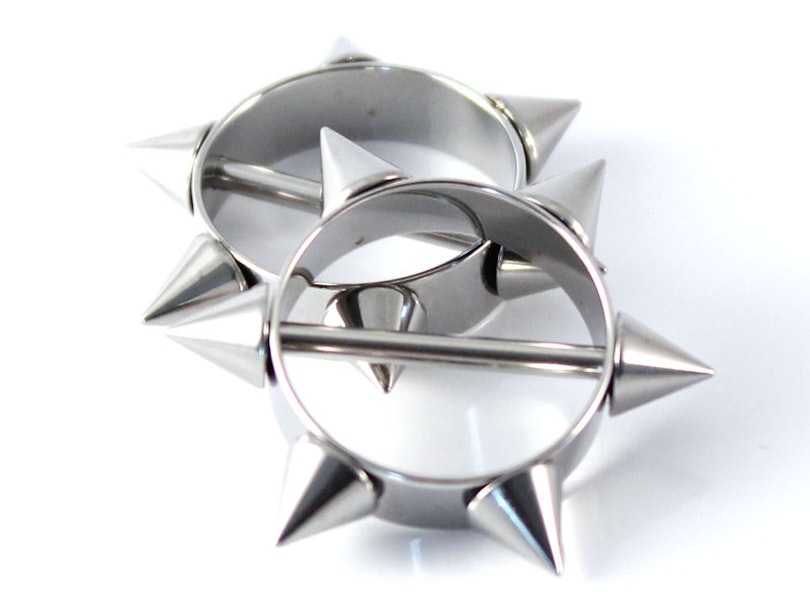 Šis satriecošais krūtsgala vairogs ar dzeloņiem, atšķirās no tradicionālajām rotaslietām. Tas sniegs jūsu pīrsingam seksīgu un radikālu izskatu. Ja jūs vēlaties nedaudz mežonīgāku pieskārienu savam krūtsgalam, tas ir ideāli piemērots jums.
