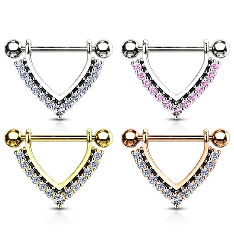 Krūtsgala stienītis ar V-formas vairogu ar kristāliem