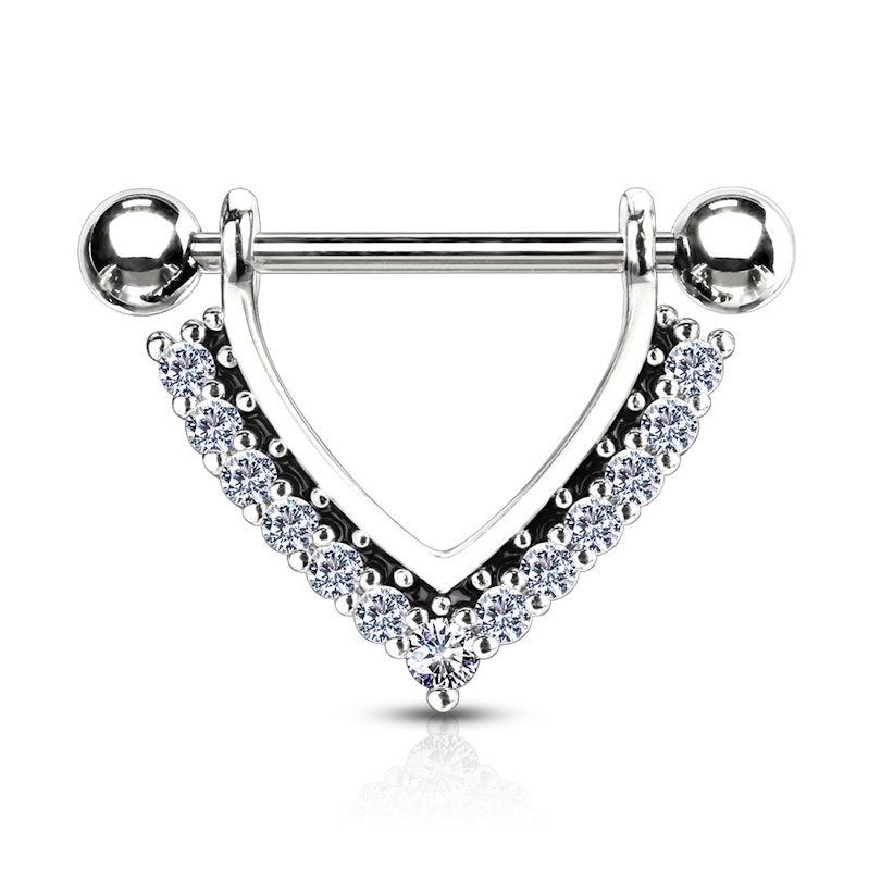 Nosaukums: Krūtsgala stienītis ar V-formas vairogu ar kristāliem