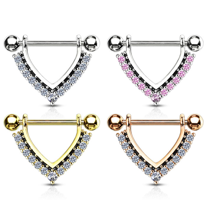 Krūtsgala stienītis ar V-formas vairogu ar kristāliem