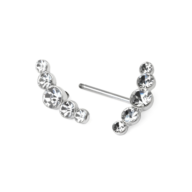 Stienis ir izgatavots no ķirurģiskā tērauda un ir 5/8 collas (16 mm) garš starp abiem lokiem. Stienis ir 14g (1.6 mm) biezs. Akmeņi ir pielīmēti pie rodija pārklāta misiņa, kuram ir neliela vītne, uz kura atrodas stienis. Jūs varat izvēlēties starp pieciem dažādas krāsas modeļiem. Izvēlieties to, kas piestāvēs vislabāk jūsu ķermenim un apģērbam.