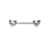 Šo titāna krūtsgala stienīti katrā tā galā rotā piemīlīgi sirds formas cirkonija akmentiņi, kas pieejami caurspīdīgā, sarkanā un rozā krāsā. Šim stienītim ir push-in aizdares mehānisms, kas nozīmē, ka to ir ļoti vienkārši ievietot un nostiprināt. Pieejami dažādi garumi.