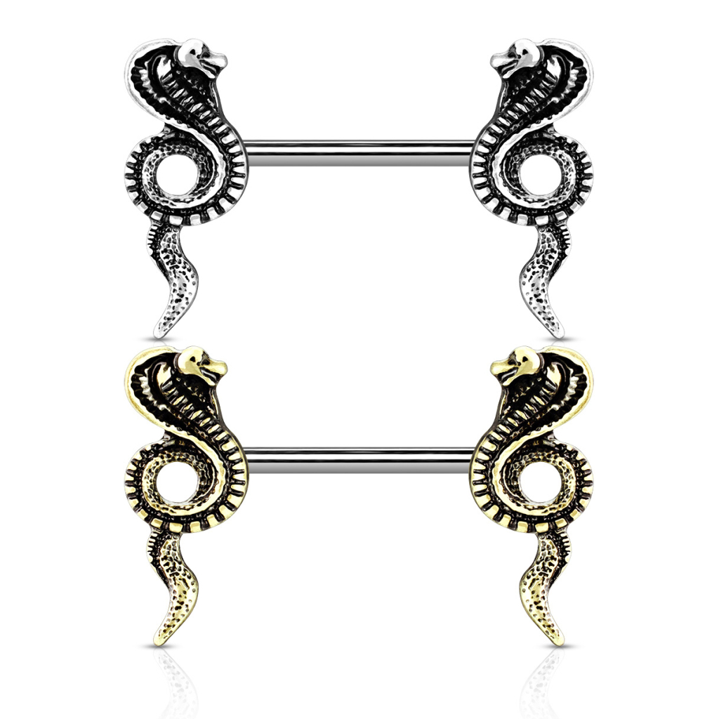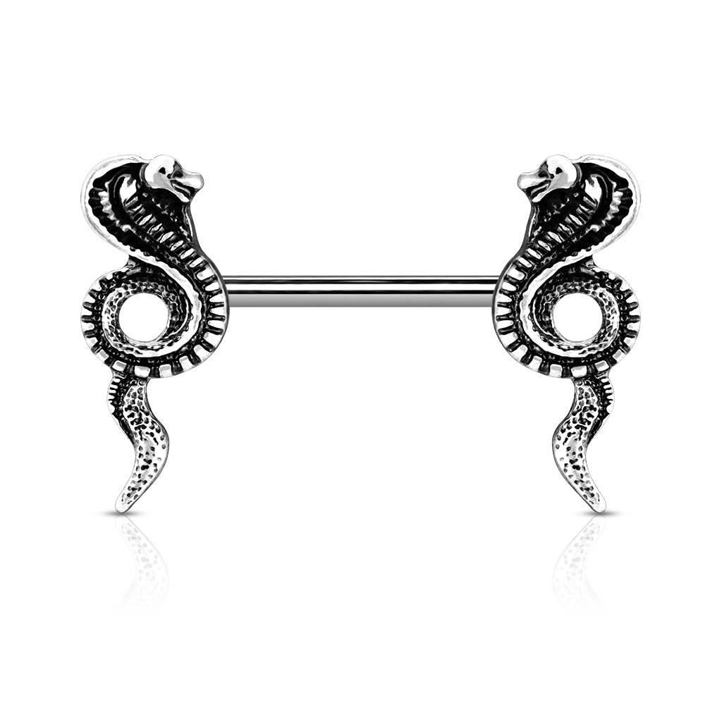 Krūtsgals pīrsings ar kobru uzgaļiem