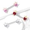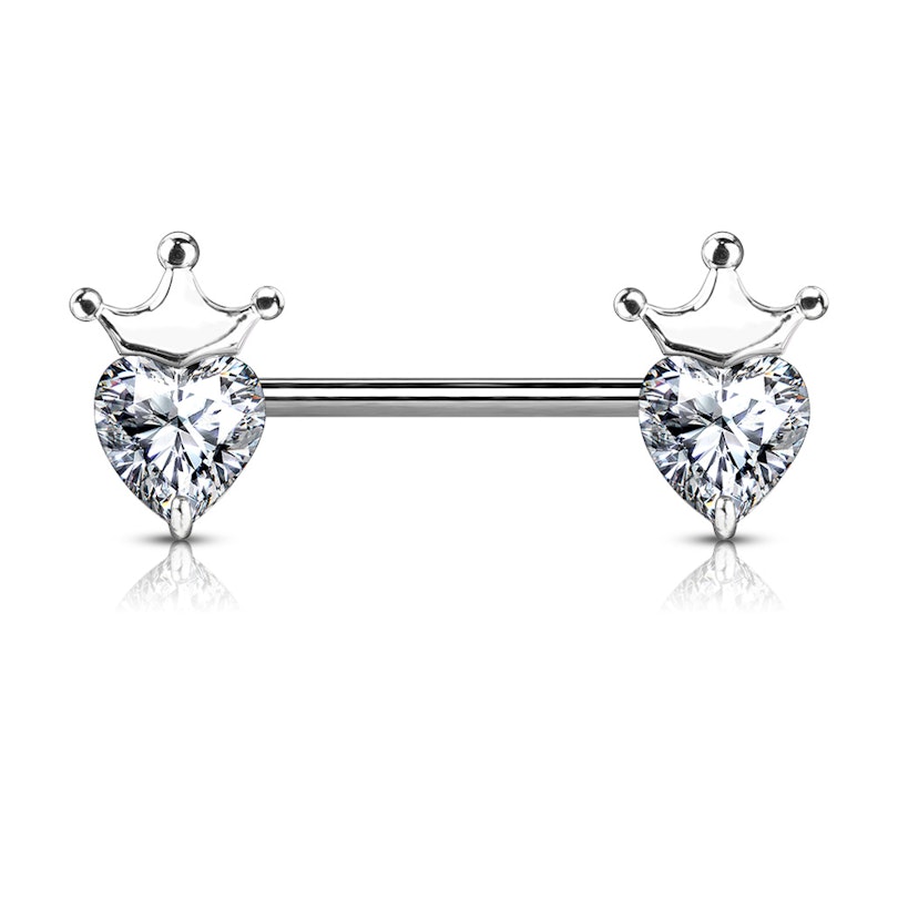 Vai meklē ekskluzīvu rotaslietu, kas piešķirs Taviem krūtsgaliem rotaļīgu piesitienu? Sajūties kā princese - šo krūtsgala stienīti rotā divas sirdis un divi kroņi! Ārēji vītņots ķirurģiskā tērauda stienītis ir 14 mm (9/16 collu) garumā un 1,6 mm (14g) biezumā. Katrā tā galā atrodas no misiņa izgatavots kronis. Tu vari izvēlēties kroņa krāsu starp trīs skaistiem un klasiskiem variantiem. Zem tiem ir mirdzošs sirds formas kristāls, kas ir pieejams arī dažādās krāsās.