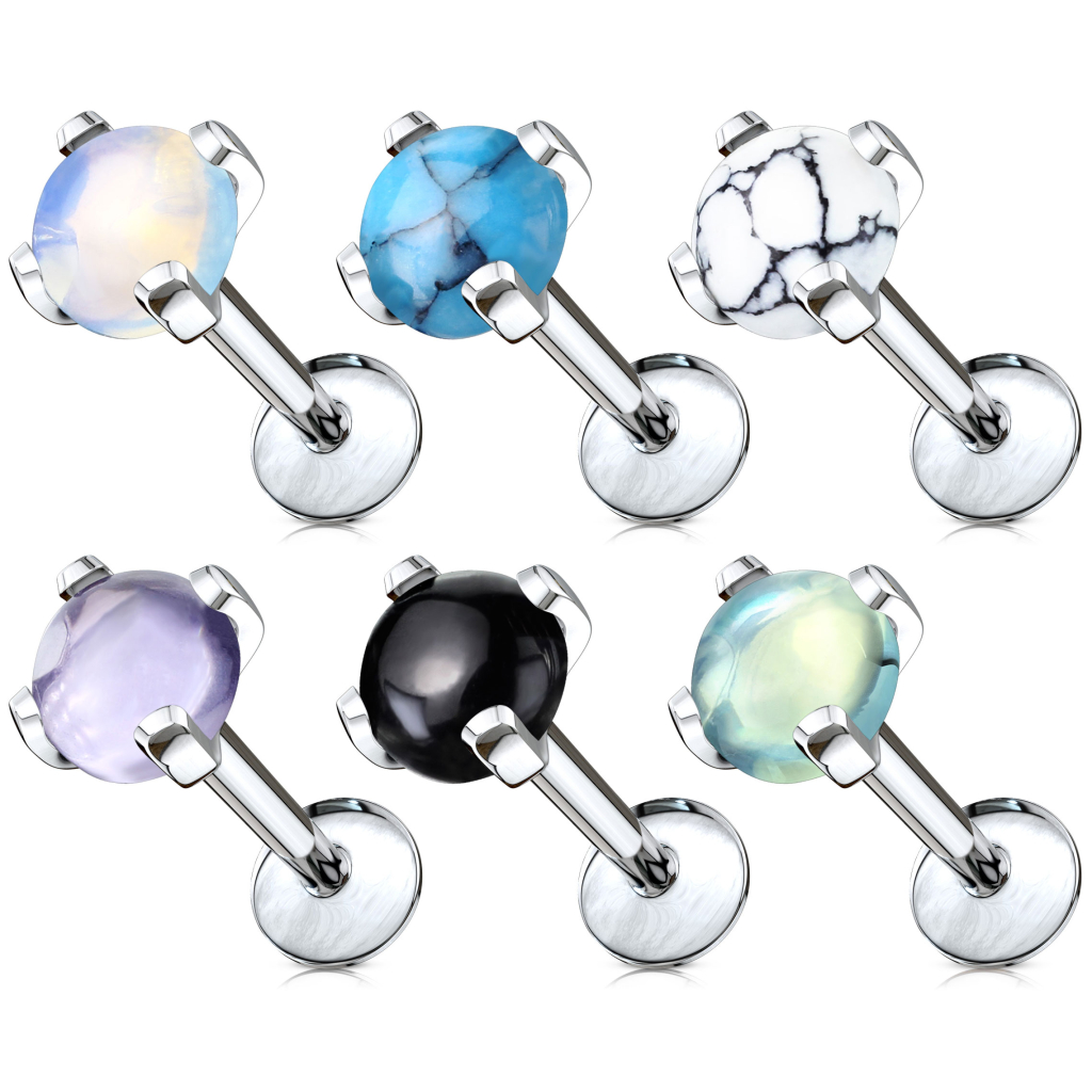 Šai ķirurģiskā tērauda labretei ir pieejami divi modeļi - ar zaļo nefrītu un balto hovlītu. Tā ir 6 mm gara, tādēļ būs ideāli piemērota lūpas pīrsingam, kā arī vairākiem auss pīrsingu veidiem. Stabiņam ir iekšējā vītne, tādēļ nesaskrambās ādu ap pīrsingu rotas ievietošanas/izņemšanas laikā.