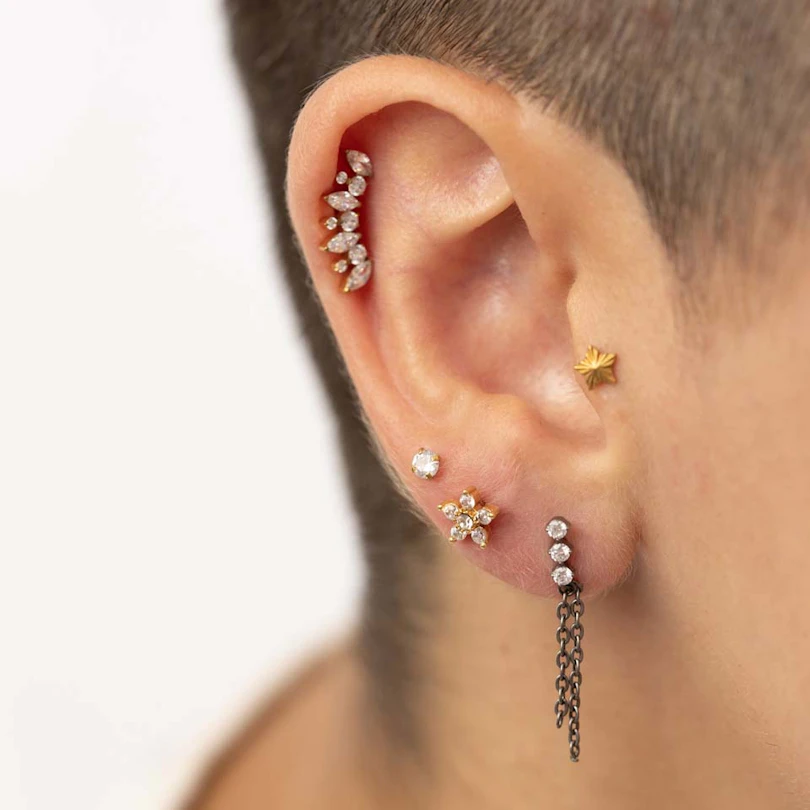Novietojums: Tragus, Spiderbite, Snakebite, Medusa, Madonna, Lower labret, Auss ļipiņa, Helix, Conch, Forward helix, Angelbite