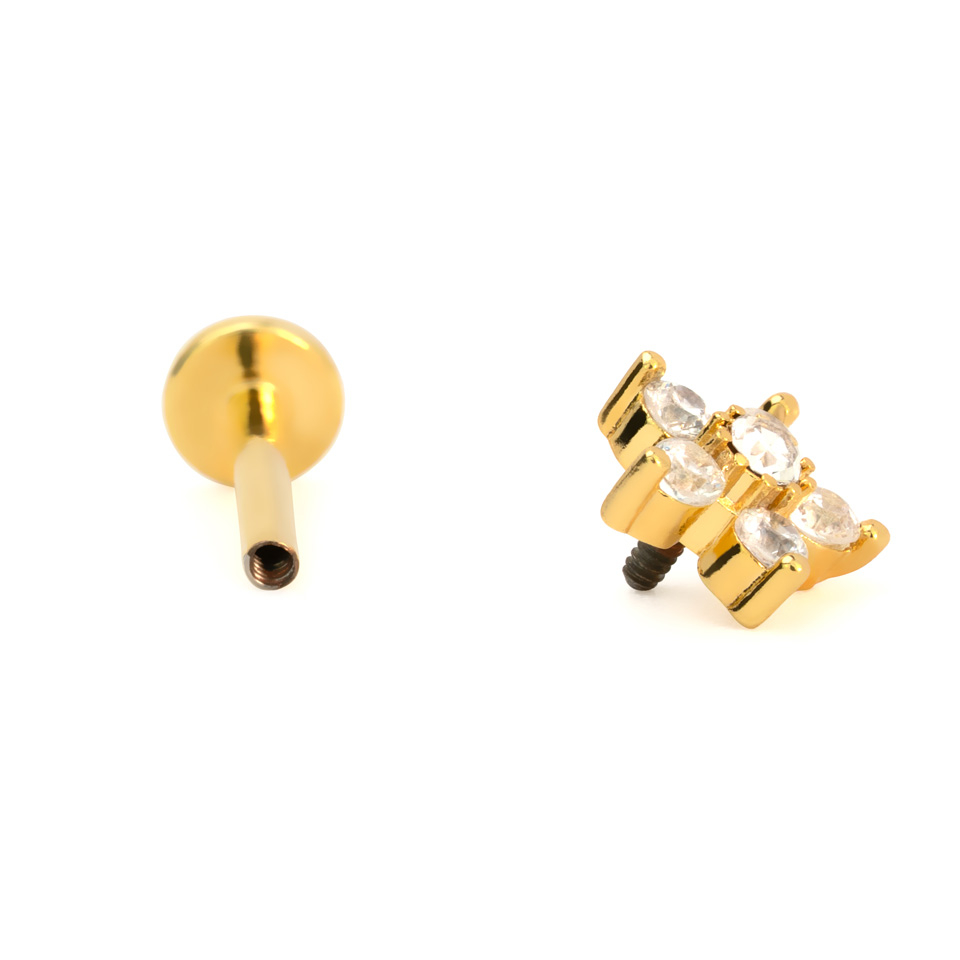 Rotaslieta ir izgatavota no ķirurģiskā tērauda. Turklāt tai ir iekšēja vītne, kas ir daudz saudzīgāks risinājums nekā ārējā vītne, tādēļ ievietojot vai to izņemot no pīrsinga, Tev nevajadzēs uztraukties par saskrambātu ādu. Tomēr tas vēl nav viss, Tu vari izvēlēties sev piemērotākā biezuma un garuma labretes stabiņu, kā arī struktūras krāsu. Zieda formas uzgaļa diametrs ir 6,4 mm.