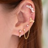 Izsmalcināta vienkāršība vienmēr būs modē! Šī labrete ir tam lielisks piemērs: tai ir uzgalis ar ievalcētu kristāliņu un dekoratīva ķēdīte, kuras viens gals ir ietverts, pie uzgaļa piemetinātajā posmā. Ķēdītes otrā galā ir riņķītis, kuru Tu vari uzkabināt uz labretes otra gala, šādi radot nokarenu loku, vai arī piefiksēt to pie citas Tavā auskaru kompozīcijā esošās rotas.
