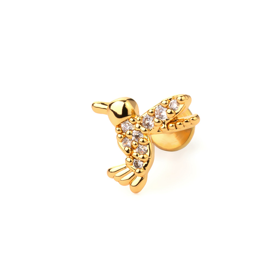 No visiem šīs zemes skaistajiem dzīvniekiem kolibri ir, iespējams, pats iedvesmojošākais. Šis mazais putniņš ir izveicīgs un inteliģents, un pārsteidz ar savu neparasto spārnu vēzienu ātrumu, spēju acumirklī mainīt virzienu (pat atpakaļgaitā) un "karāties gaisā". Cildinot šo dižo, eksotisko radībiņu, piedāvājam Tev labreti ar uzgali tās formā. Smalkie kristāli, kas noklāj putniņa rumpim un spārnus, piešķir rotai burvīgu mirdzumu.