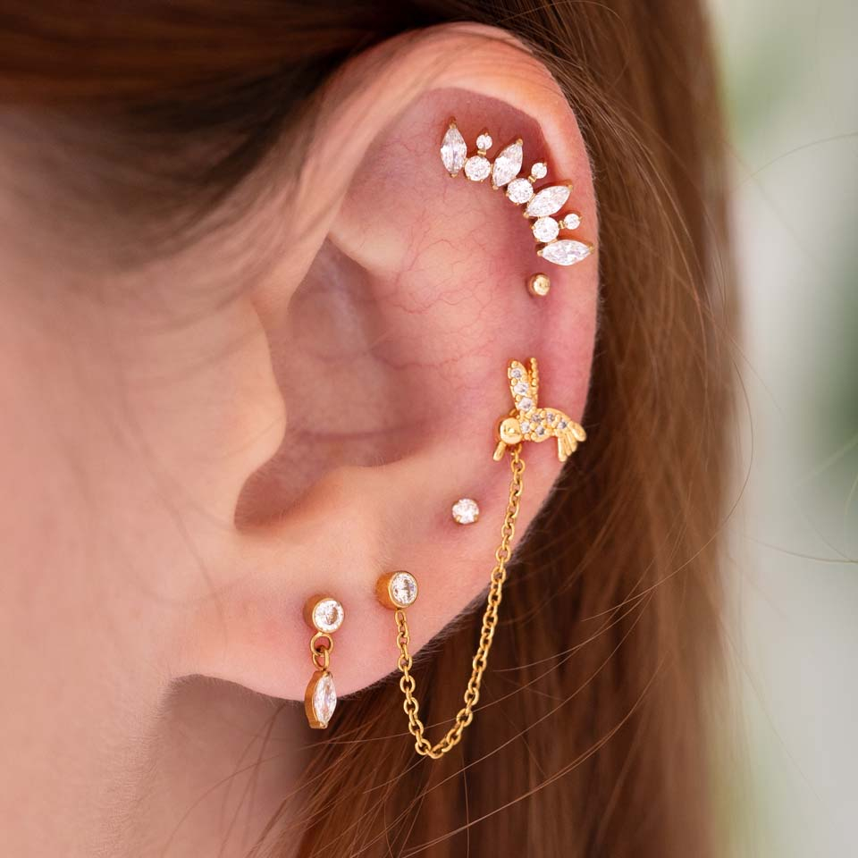 Novietojums: Tragus, Spiderbite, Snakebite, Medusa, Madonna, Lower labret, Auss ļipiņa, Helix, Conch, Forward helix, Angelbite