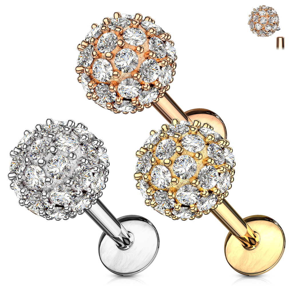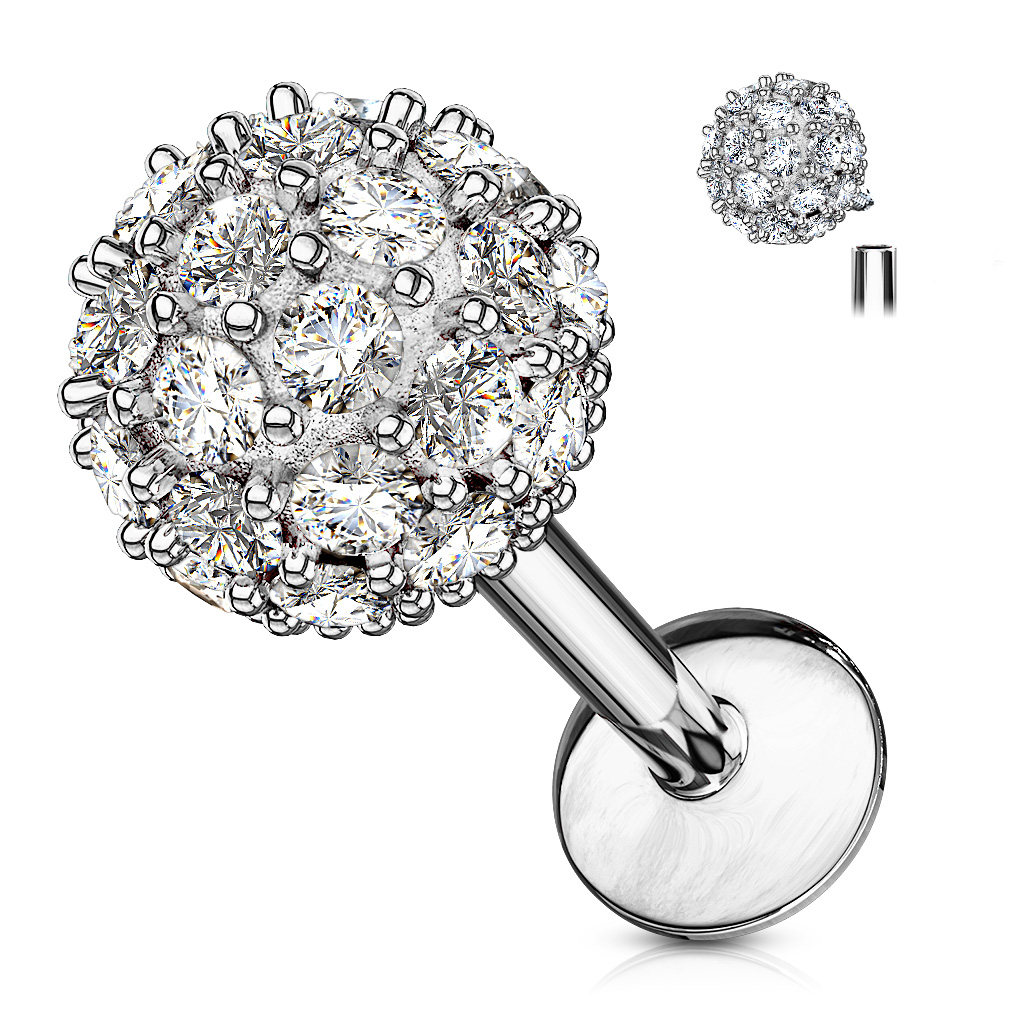 Labretei ir liels bumbiņveida uzgalis, kurš ir 6 mm diametrā. Bumbiņa ir izrotāta ar maziem, dzidriem kristāliem, kura gaismā metīs burvīgas dzirksteles - šī labrete noteikti pievērsīs visu uzmanību.