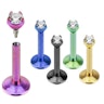 Super piemīlīgs ķirurģiskā tērauda labrete ar skaistu titāna pārklājumu, piecās burvīgās krāsās. Šī labrete ir nedaudz savādāka par pārējām, jo stabiņš nav ierastajā sudraba krāsā. Tajā pat laikā, labretei ir liela priekšrocība, jo tā ir iekšēji vītņota, tādēļ risks, ka tas saskrambās ādu pie ievietošanas un izņemšanas, ir minimāls.