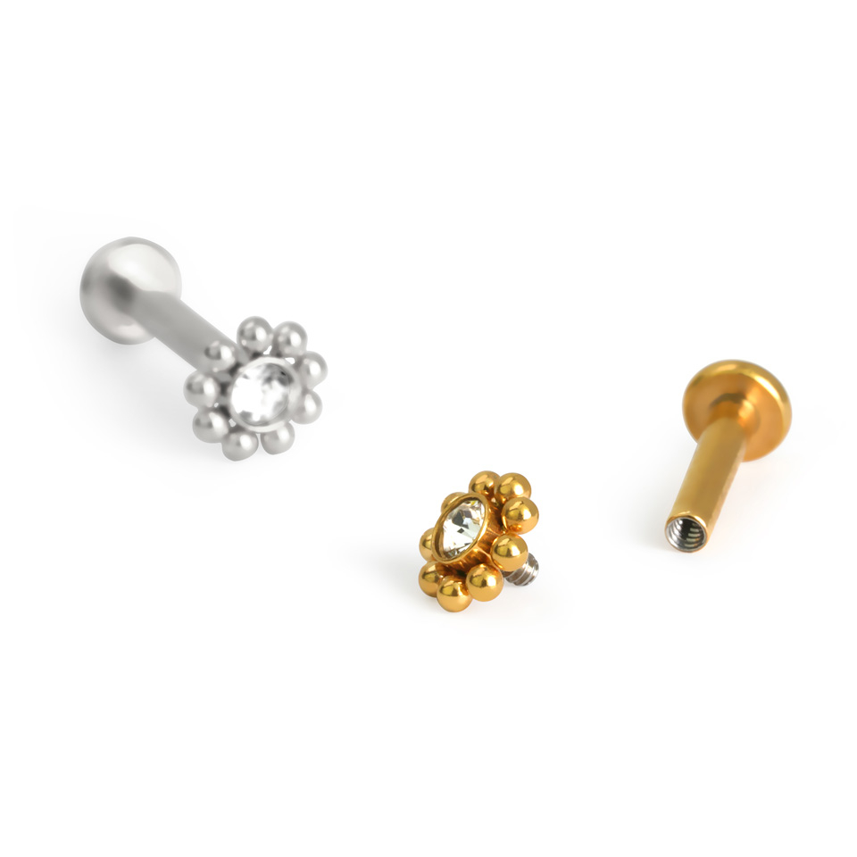 Visiem modeļiem ir uzgalis ar lodīšu ietvaru, kurā mirdz burvīgs kristāldzidrs akmentiņš. Labretes stabiņam ir iekšējā vītne, kas pretēji ārējai vītnei, nesaskrambās pīrsingu.