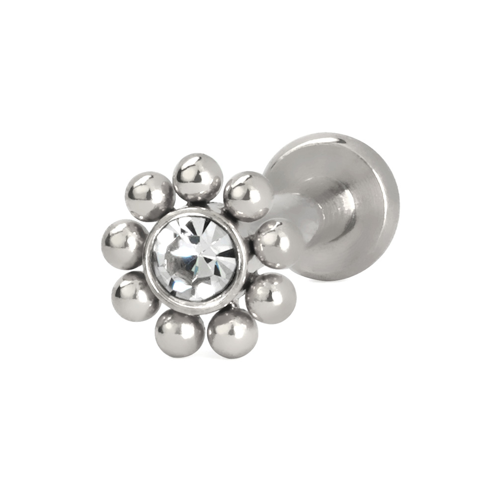 Šo skaisto labretu nēsāju kā papildinājumu manam bumbiņu klikkerim. Man šķiet, ka motīvs izskatās kā saule. Mazās bumbiņas ieskauj zirkonija kristālu kā stari. Skaisti. Tā kā nēsāju sudraba un zelta rotas, esmu atļāvusi sev gan dzeltenā zelta, gan sudraba variantu. Tomēr man ir lūgums uz Bodymod komandu: šie dārgumi titānā! Bet arī šie ķirurģiskā tērauda ir labi panesami. Šajā garā: Lai jums sirdī saulīte un iegādājieties šos burvīgos gabalus!