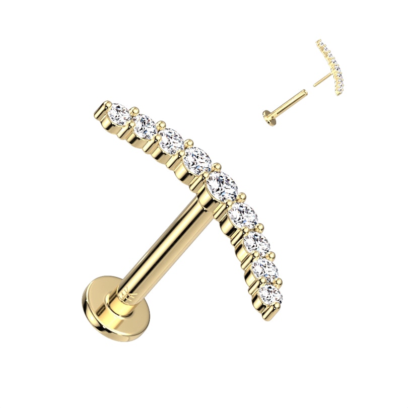 Labrete push-in no 14K zelta ar lokveida CZ kristāliņu uzgali
