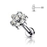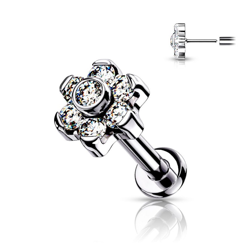 Labretes uzgalī ir iestrādāti septiņi nelieli akmentiņi - kopā tie veido smalku ziediņu ar sešām ziedlapiņām, kurā centrālais akmentiņš jeb zieda viducis ir nedaudz izvirzīts uz āru. Ir pieejamas dažādas akmentiņa krāsas.
