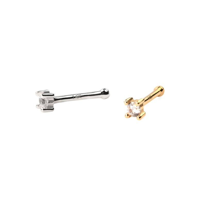 Šī rotaslieta ir vienkāršs deguna stienītis ar skaistu, šķautņaini slīpētu, kristālu, tā galā. Šī deguna kniede nav parasta nevienā veidā - tā ir izgatavota no 14 karātu zelta, un to ir iespējams iegūt arī 14 karātu baltā zeltā.