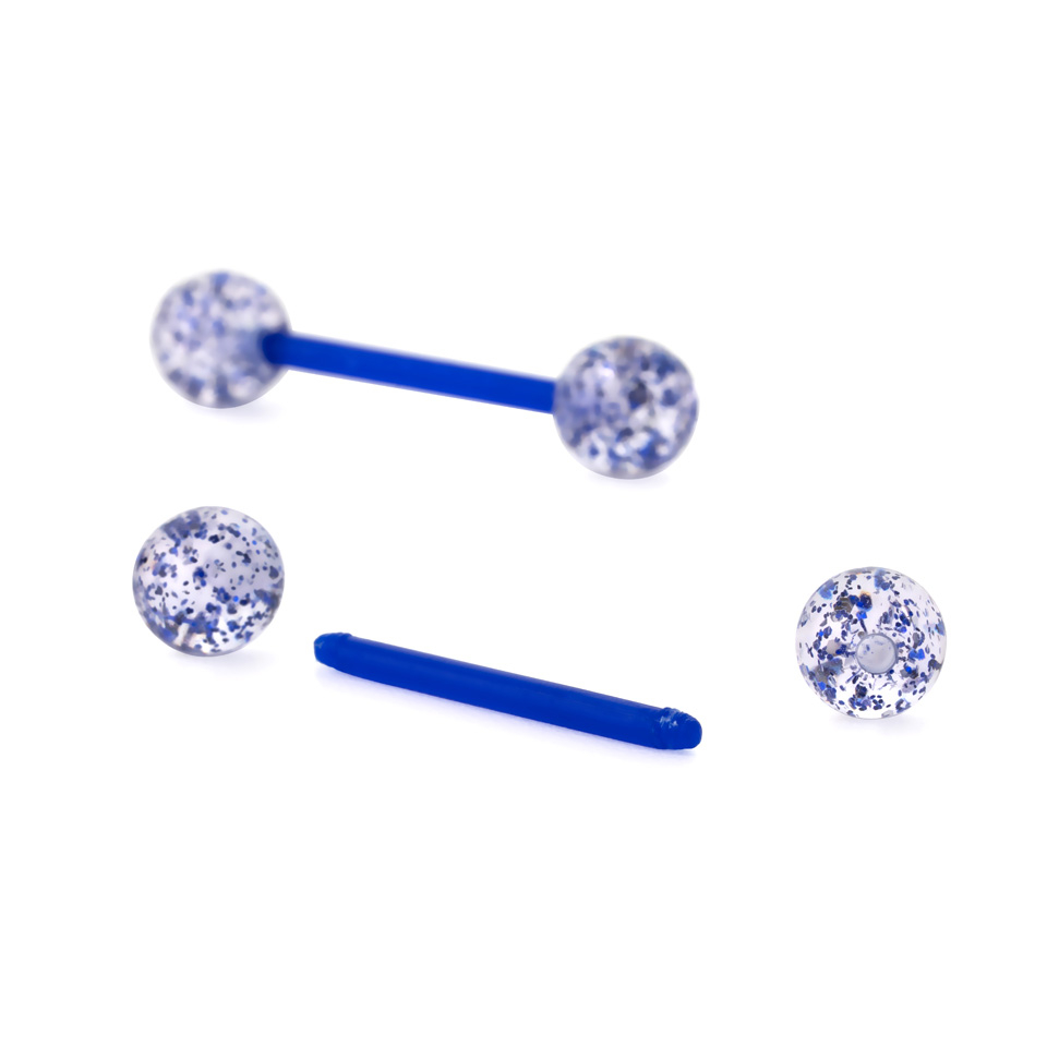 Nosaukums: Mēles pīrsinga stienītis no bioplastmasas ar spīdumiem noklātiem uzgaļiem