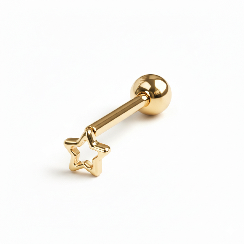 Šis mēles stienītis no titāna ar zvaigzni ir hipoalerģisks, tādēļ piemērots tiem, kam ir jūtīga āda. Stienītim ir iekšējā vītne, kas nozīmē, ka Tev jāievieto rotas gludais stienītis savā pīrsingā un tad jāuzskrūvē uzgalis, lai rotu nostiprinātu.