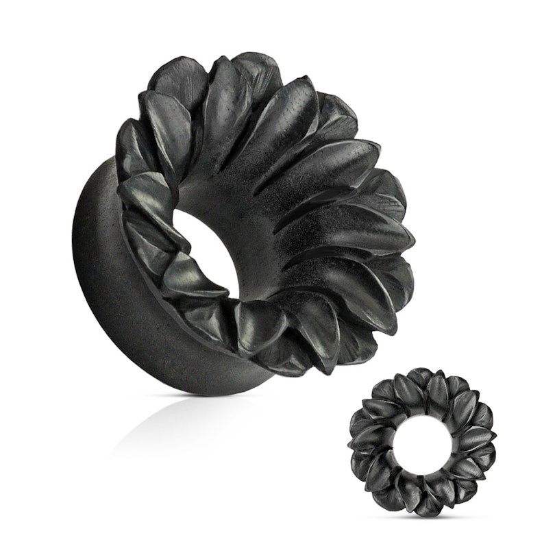 Šis melnais tunelis ar ziedu tā priekšpusē ir izgatavots no koka, kas izcili adaptēsies jūsu ķermenim. Tas ir izcirsts lotosa zieda formā, skaists dizains jūsu auss ļipiņai.