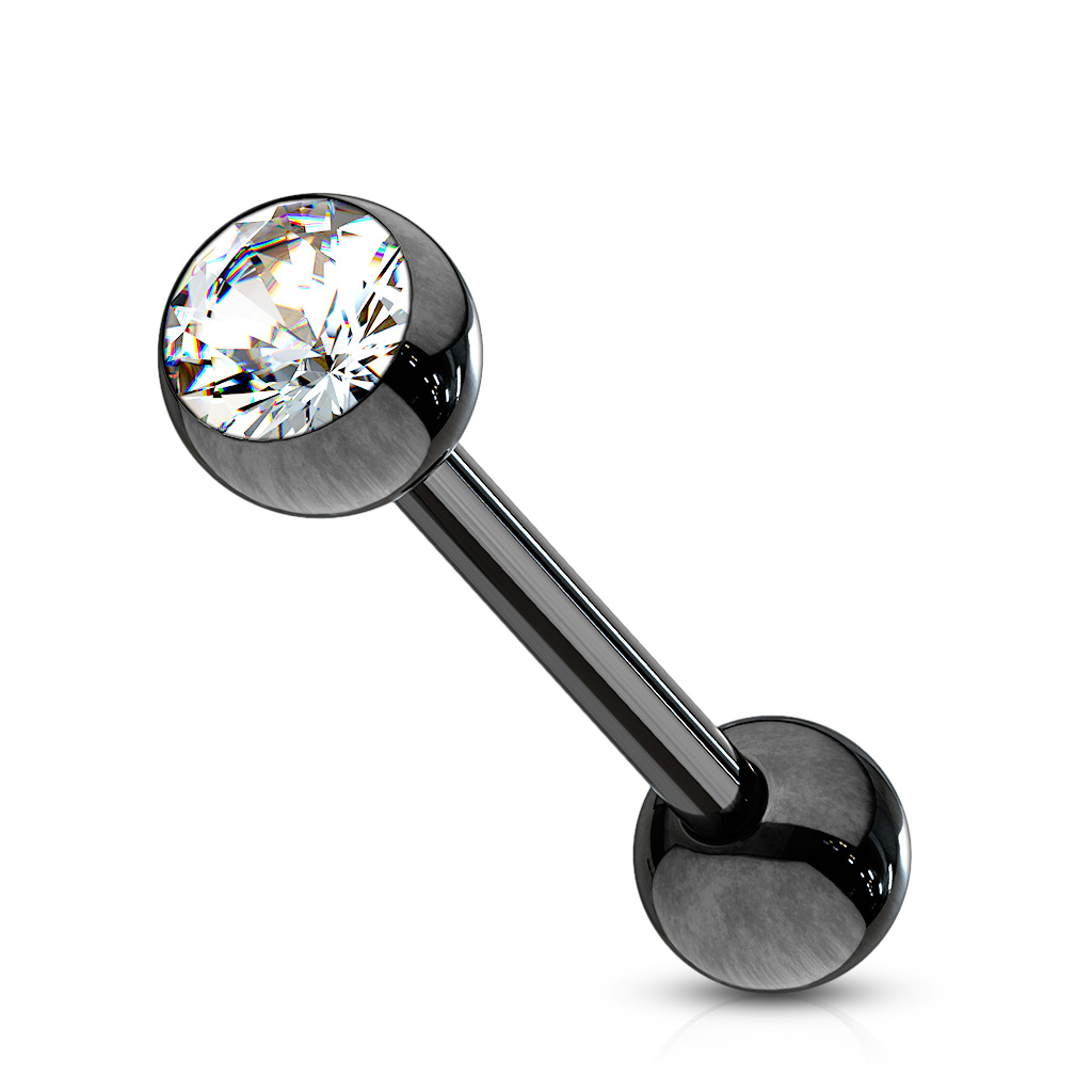 Mēles pīrsinga stienītis melnā krāsā ar krāsainu kristālu