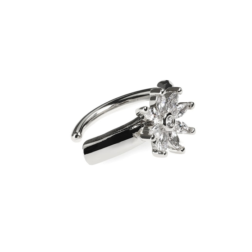 Šo stilīgo nabas klikeri rotā mirdzošs zieds tā centrā. Zieds sastāv no 9 cirkonija akmentiņiem. Rota ir pieejama ar zelta vai sudraba krāsas pārklājumu.
