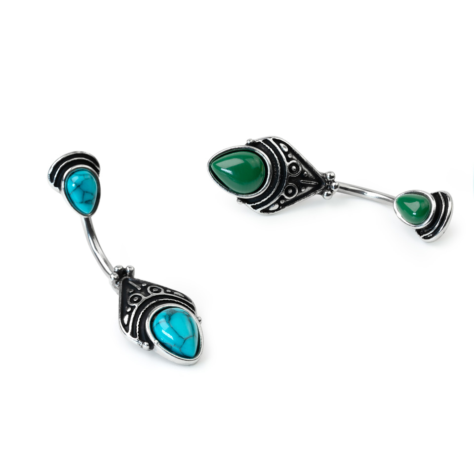 Nabas pīrsings ar antīku filigrāna dizainu un ovāliem dārgakmeņiem