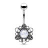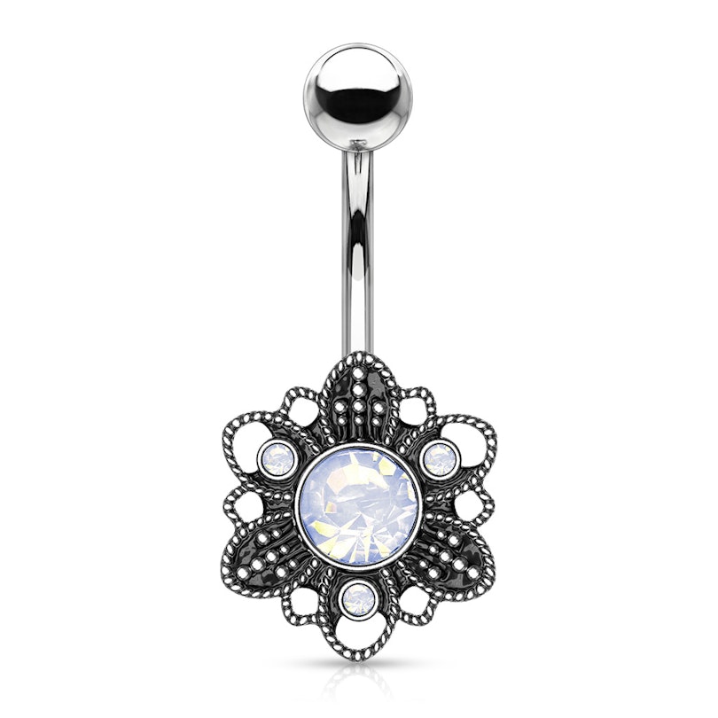 Nabas pīrsinga stienītis ar antīku ziedu un opalītu