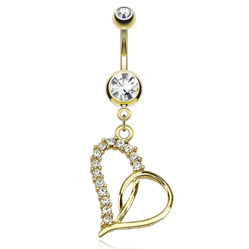 Nosaukums: Nabas pīrsings ar apzeltītu sirdi un inkrustētiem kristāliem