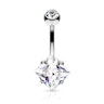 Ja jums patīk nabas pīrsingi, kuri izceļas, tad šis satriecošais modelis ir kā radīts jums! Par spīti tā vienkāršajam dizainam, tā apakšdaļas uzgali rotā burvīgs kvadrāta formas kristāls. Kristāls ir nedaudz piepacelts, kas liek rotai izskatīties patiesi eleganti, kas tā ir ievietota pīrsingā. Kristāls ir pietiekami liels, lai tas tiktu pamanīts, tādēļ tas ir nofiksēts tikai ar smalkām dakšīņām.