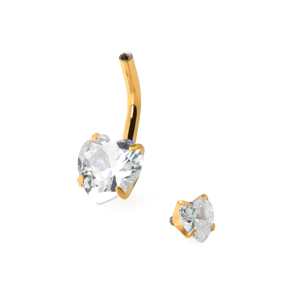 Paturiet prātā, ka šī rotaslieta ir iekšēji vītņota, kas ir tās priekšrocība, jo tā neskrāpēs un nekā citādi nebojās Jūsu ādu, kamēr ievietosiet rotaslietu. Bet tas vēl nav viss, jo Jūs varat izvēlēties krāsu arī sirds-formas kristāliem. Aplūkojiet izvēlni, lai redzētu visas iespējamās opcijas šim apburošajam nabas pīrsingam un izveidojiet versiju savā gaumē.