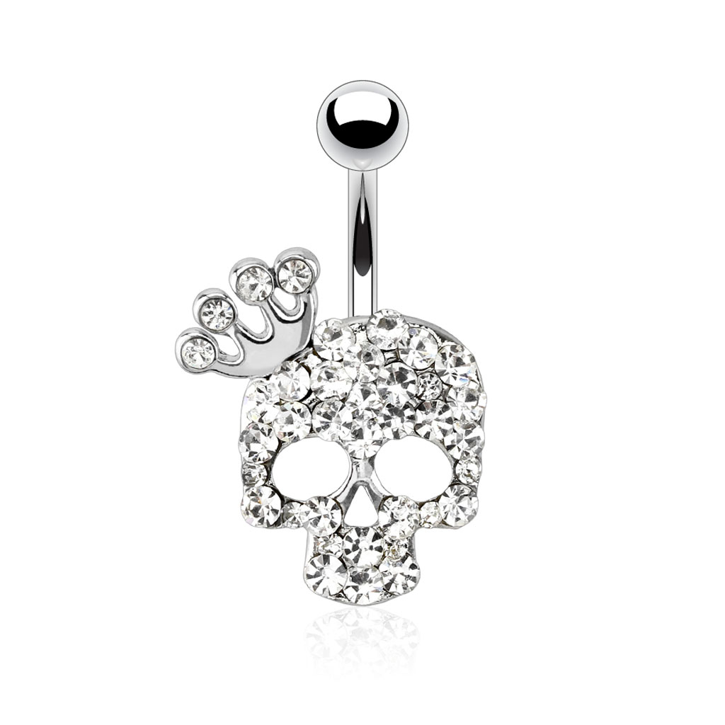 Nabas pīrsings ar kristāliem pārklātu galvaskausu ar kroni