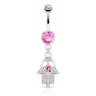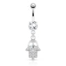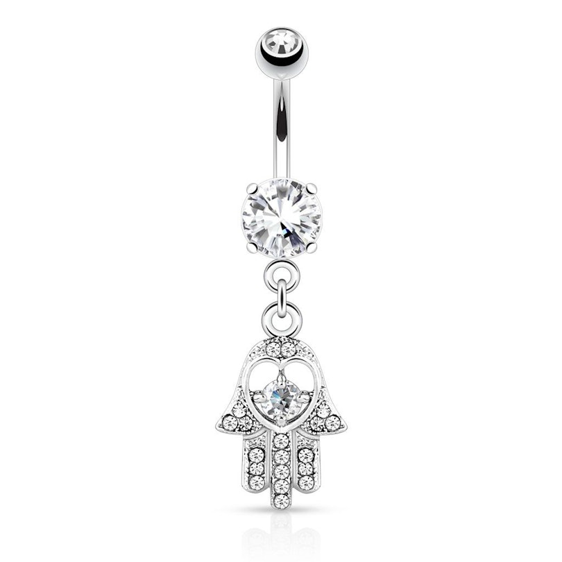 Nabas pīrsings ar kristāliem un hamsa kulonu
