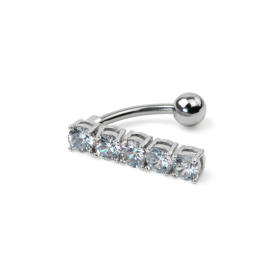 Attēlā redzamais nabas pīrsings ir apgrieztā nabas pīrsinga rota, kas nozīmē, ka atšķirībā no regulārajiem vēdera gredzeniem, tas nokarāsies no augšdaļas uzgaļa.
