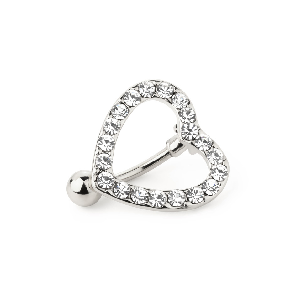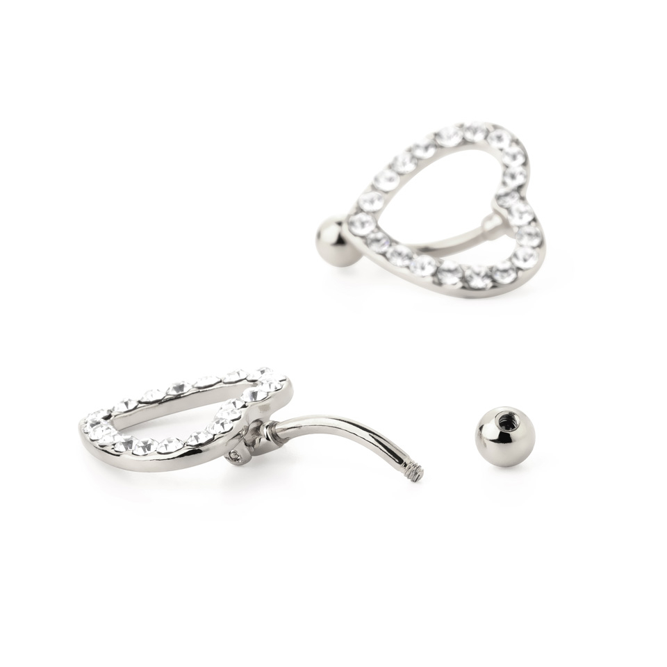 Nabas pīrsings ar sirds formā inkrustētiem kristāliem