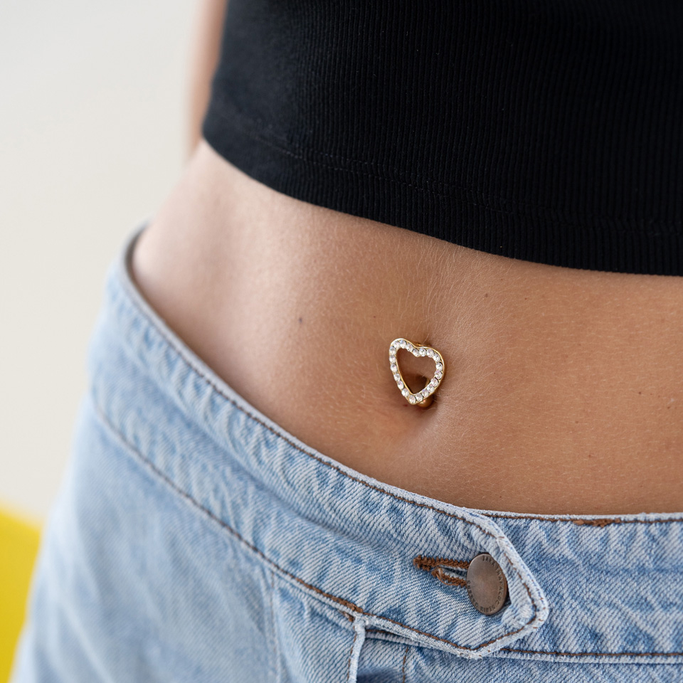 Nosaukums: Nabas pīrsings ar sirds formā inkrustētiem kristāliem
