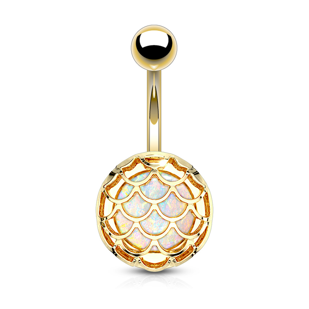 Patiesi, opāls aiz režģīša, veido zvīņām līdzīgu formu. Tomēr opāla akmeni ir viegli pamanīt, tā kā tas mirdz cauri jebkādam rāmim, ik reizi, kad tas tiek apgaismots. Tomēr, ņemiet vērā, ka tas ir sintētisks opāls: tas neietekmē tā skaistumu, bet palīdz samazināt rotaslietas cenu.