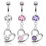 Nabas pīrsings ar sirds un kristālu piekariņu