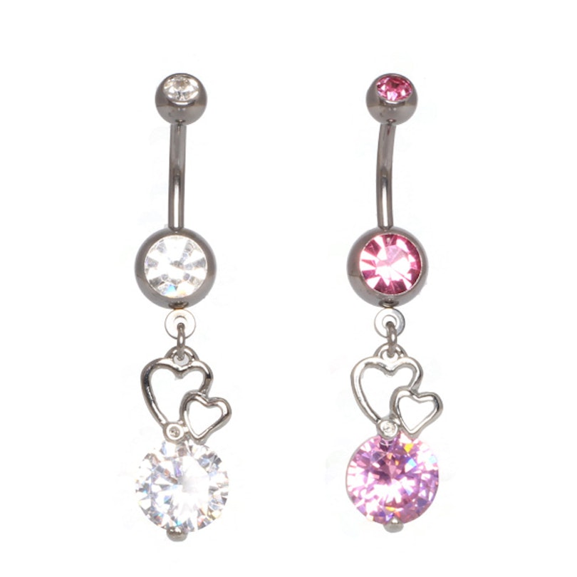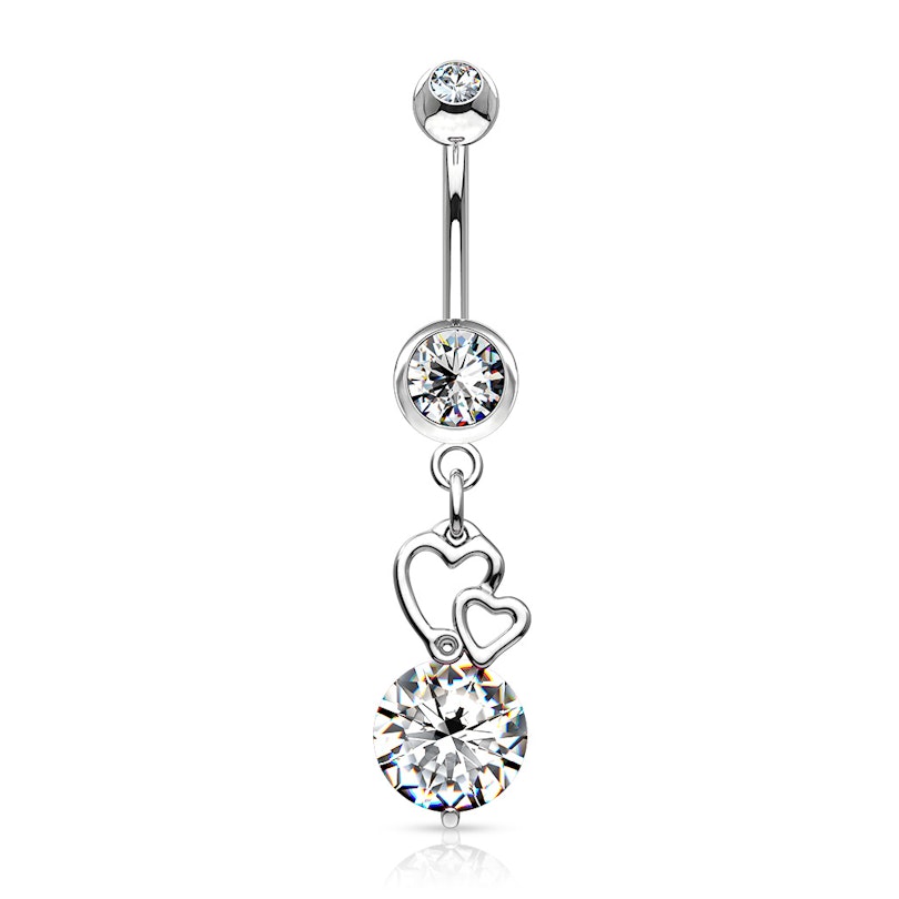Nabas pīrsings ar sirds un liela kristāla piekariņu