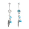 Vai meklējat jaunu nabas pīrsingu? Vai jums patīk tirkīzs? Ja esat atbildējuši apstiprinoši uz abiem jautājumiem, šis nabas pīrsinga stienītis ir kā radīts jums, jo jūs mīlat dabīgas krāsas. Spalva piešķir tam bohēmisku izskatu, un gan apakšdaļas, gan augšdaļas uzgalis padara šo rotaslietu par dabīgu skaistuli.