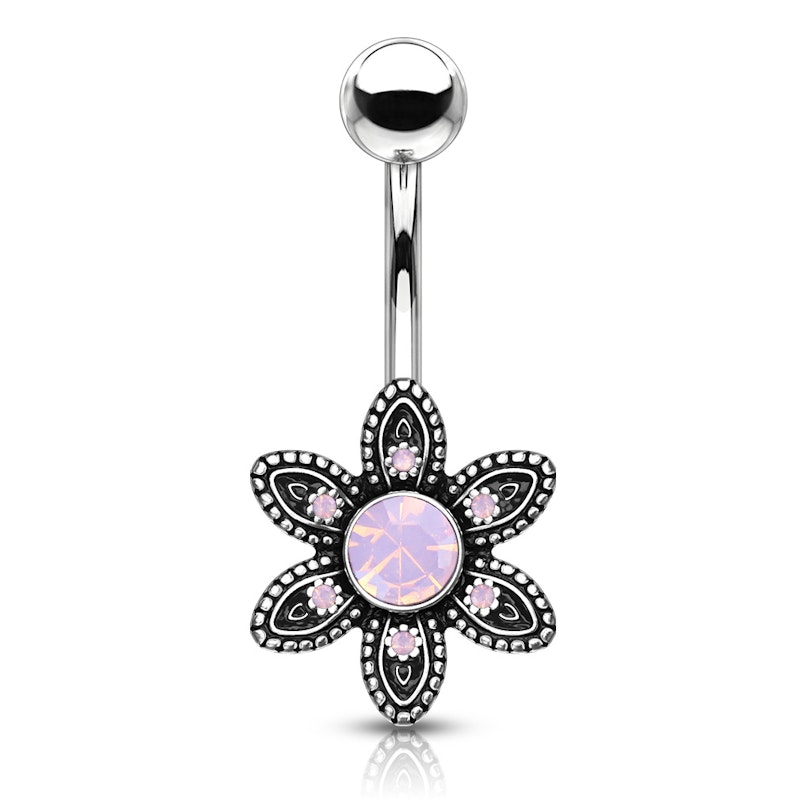 Nabas pīrsings ar ziedu un apaļu opalītu