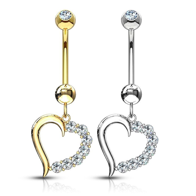 Nosaukums: Nabas pīrsings no 14 karātu zelta ar kristāliem pārklātu sirds kulonu