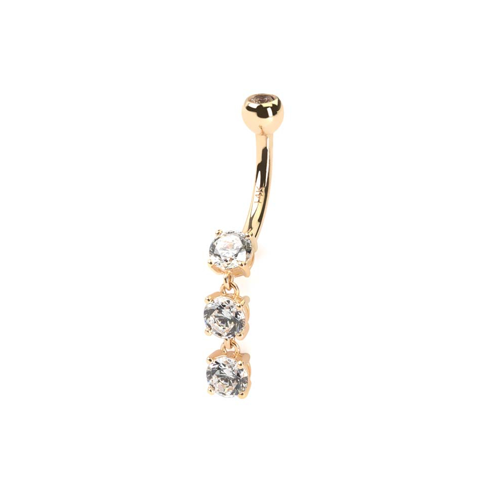 Nosaukums: Nabas pīrsings no 14 karātu zelta un trim kristāliem