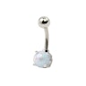 Šo ķirurģiskā tērauda nabas pīrsinga stienīti rotā balts opāls, kas iestrādāts ietvarā. Rotaslietai ir ārējā vītne - vienkārši uzskrūvē bumbiņu uz stienīša, lai nostiprinātu rotu savā pīrsingā. Pieejams ar zelta vai sudraba krāsas pārklājumu. Šī rota ļaus Tev atsvaidzināt savu ārieni.