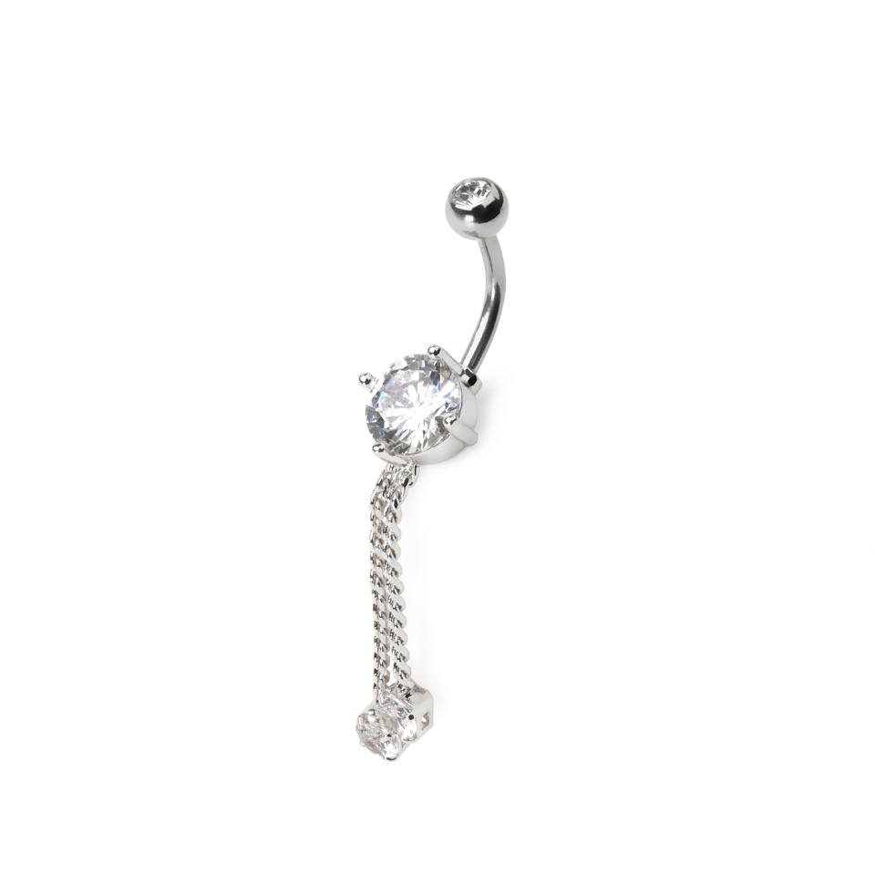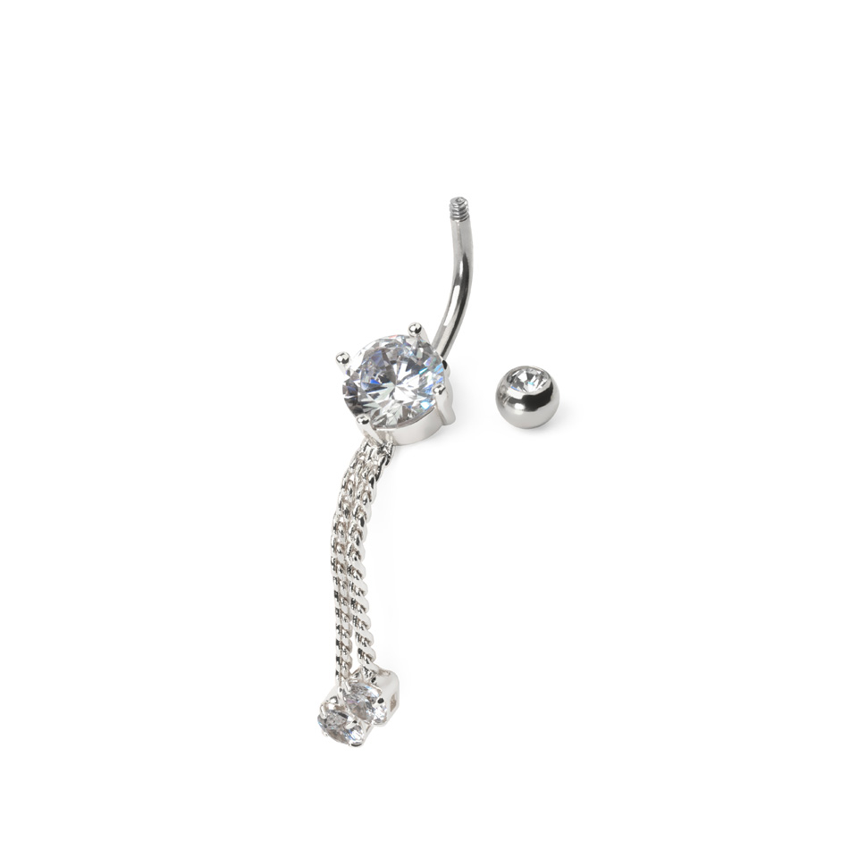 Tā ķirurģiskā tērauda stienītis ir izturīgs un komfortabls nēsāšanai. Stienīša nēsājamā daļa ir 10 mm gara, bet tā vītnes biezums ir 1,6 mm. Ķēdītes nokarājas no centrālā kristāla un ir 28 mm garas.