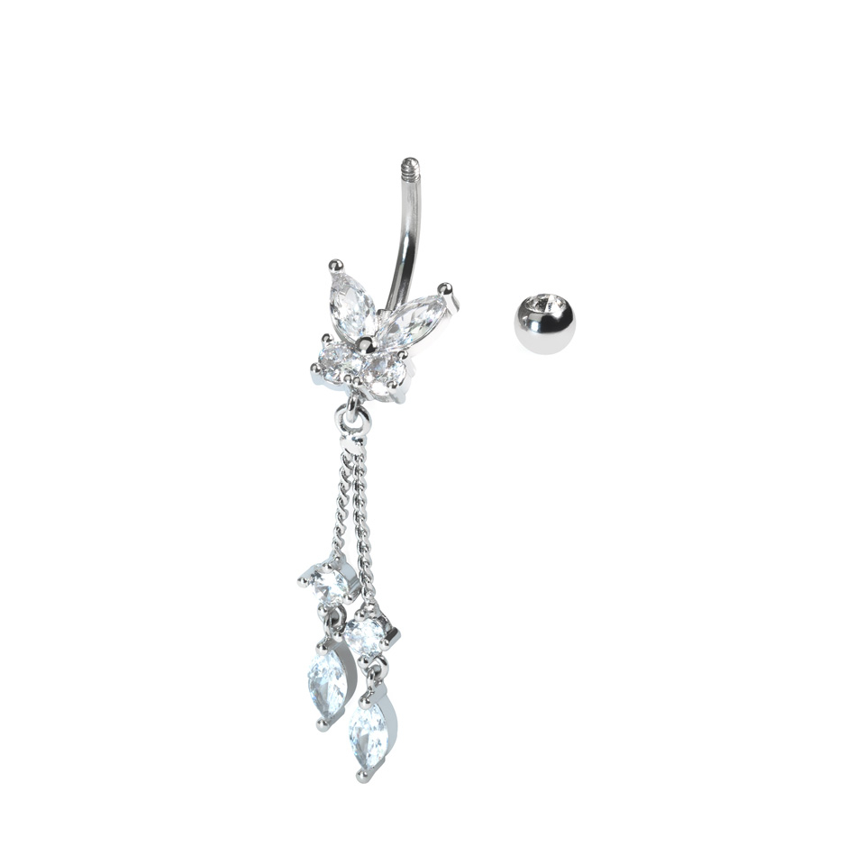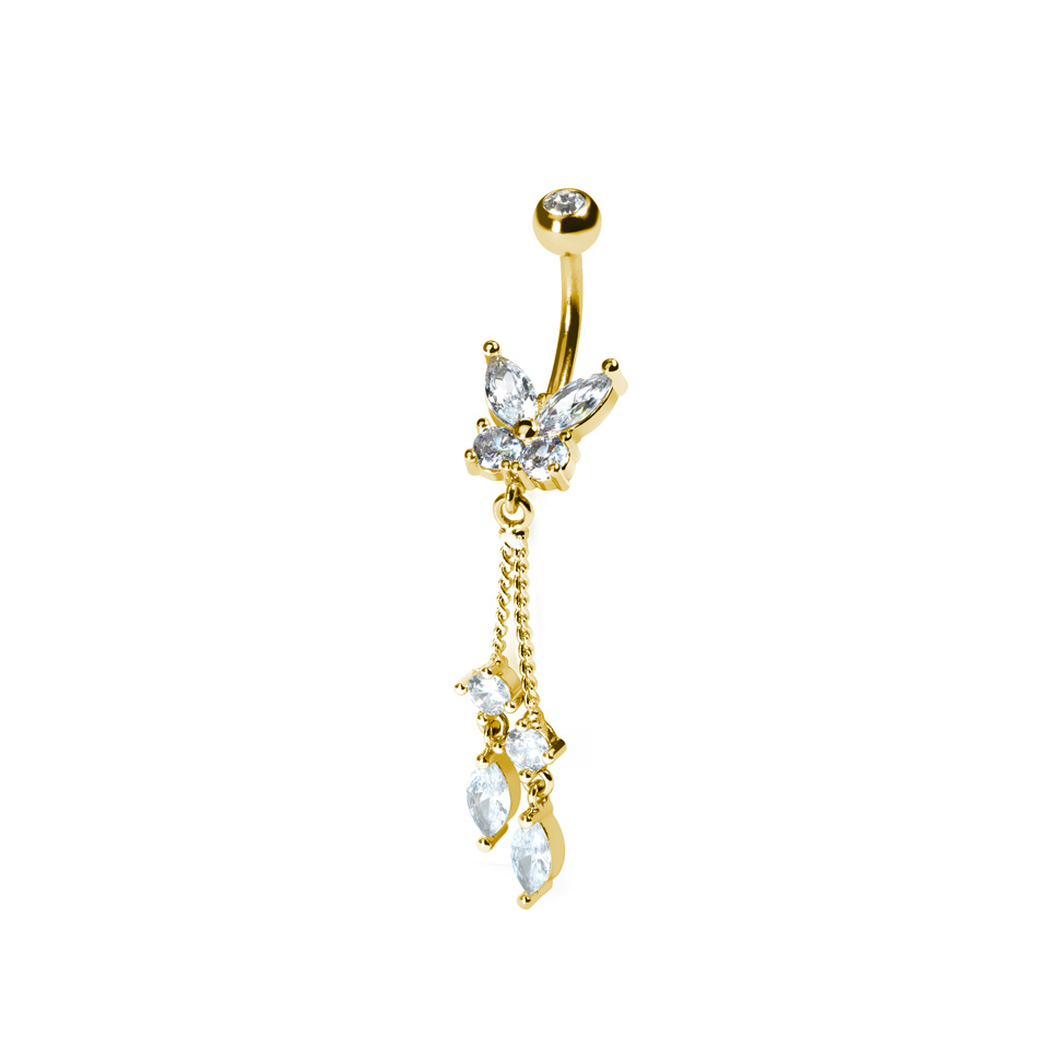 Šī mirdzošā nabas stienīša apakšējā bumbiņa ir izrotāta ar skaistu tauriņu, turklāt pie tā ar smalkām ķēdītēm ir piestiprināti piekariņi ar mirdzošiem akmentiņiem.