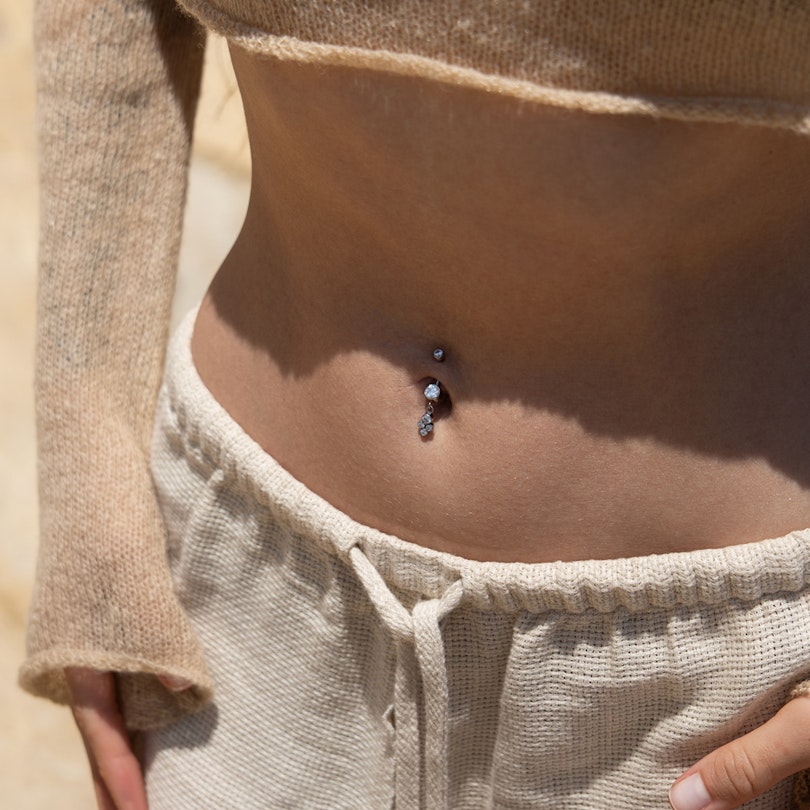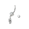 Nabas stienītis no titāna ar apaļu kristālu un kristālu kopas piekariņu
