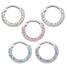 Tā loks ir dekorēts ar kristāliem, kuri ir pieejami piecās dažādās krāsās. Kristāli ir ieklāti līdz stienītim; pēc ievietošanas septum pīrsingā, būs redzami tikai kristāli, kuri mirgos burvīgā gaismas spēlē. Neatkarīgi no izvēlētās krāsas, visos modeļos gan augšdaļā, gan apakšdaļā ir nelieli punktiņi. Šīm septum klikerim ir elegants un rūpīgi detalizēts dizains.