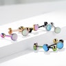 Attēlā ir redzams ļoti oriģināla dizaina mēles pīrsinga stienītis. Tā augšdaļas uzgali rotā nokrāsu mainoša virsma, kura atgādina zvīņas. Zvīņas ir izgatavotas no sveķiem, kuri kopā ar gaismu piešķir burvīgo nokrāsu mainošu efektu. Izvēloties modeli ar rozā zvīņām, jūs ievērosiet, ka kustībā tas mainās uz dažādām rozā krāsas niansēm. Turklāt jūs varat izvēlēties, starp dažādām stienīša krāsām - katra krāsa sniegs mēles pīrsinga stienītim, neatkārtojamu un svaigu kombināciju.