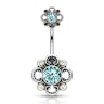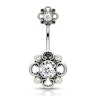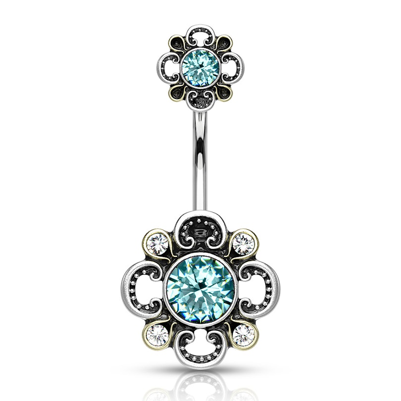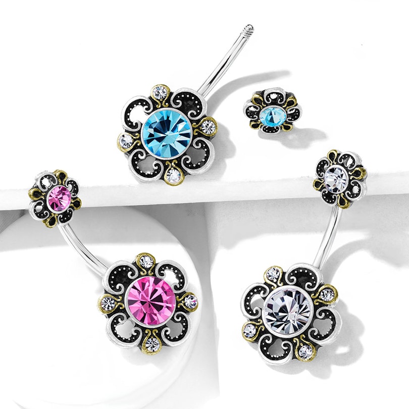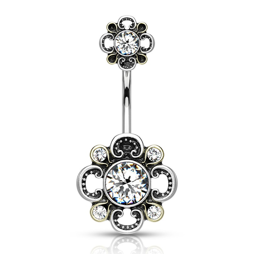 Nabas pīrsinga stienītis ar filigrāna ziedu un lapām